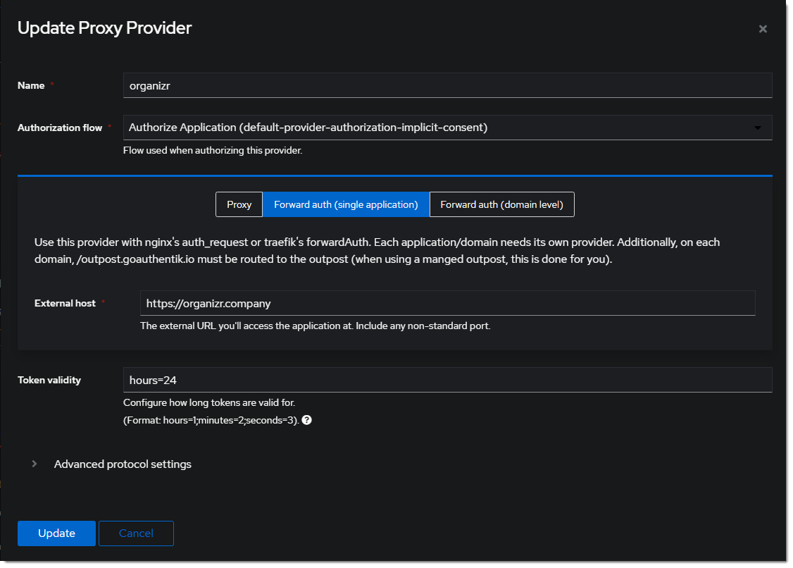 organizr.companyis the FQDN of the Service installation.authentik.companyis the FQDN of the authentik installation.
